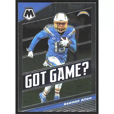 This is a 2020 Panini Mosaic Got Game? Keenan Allen football card. The card is #GG14 and pictures show condition.