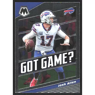 This is a 2020 Panini Mosaic Got Game? Josh Allen football card. The card is #GG23 and pictures show condition.