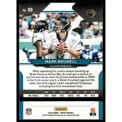 This is a 2020 Panini Prizm Mark Brunell football card. The card is #100 and pictures show condition.