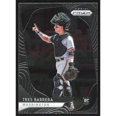 This is a 2020 Panini Prizm Tres Barrera baseball card. The card is #206 and pictures show condition. Team(s): Washington Nationals Rookie Card (RC)