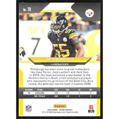 This is a 2020 Panini Prizm Devin Bush II football card. The card is #70 and pictures show condition.