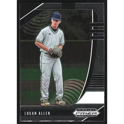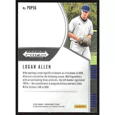 This is a 2020 Panini Prizm Draft Picks Logan Allen baseball card. The card is #PDP56 and pictures show condition.