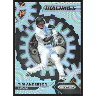 This is a 2020 Panini Prizm Machines Silver Tim Anderson baseball card. The card is #M-5 and pictures show condition.