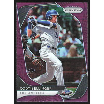 This is a 2020 Panini Prizm Purple Cody Bellinger baseball card. The card is #28 and pictures show condition.