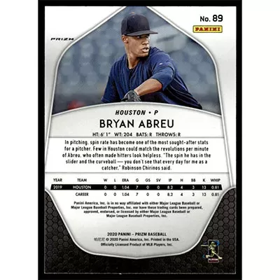 This is a 2020 Panini Prizm Red White and Blue Bryan Abreu baseball card. The card is #89 and pictures show condition. Team(s): Houston Astros Rookie Card (RC)