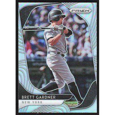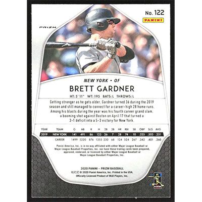 This is a 2020 Panini Prizm Silver Brett Gardner baseball card. The card is #122 and pictures show condition.