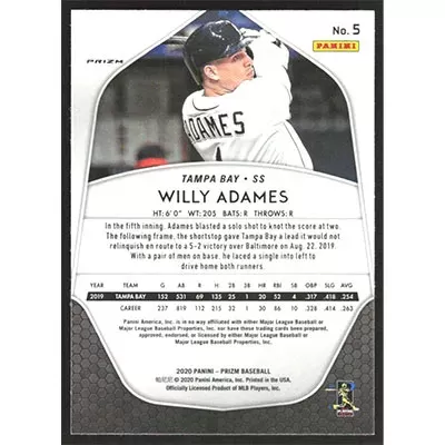 This is a 2020 Panini Prizm Silver Willy Adames baseball card. The card is #5 and pictures show condition.