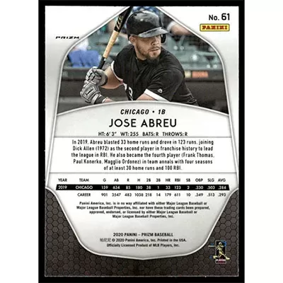This is a 2020 Panini Prizm Silver Jose Abreu baseball card. The card is #61 and pictures show condition.