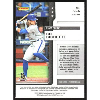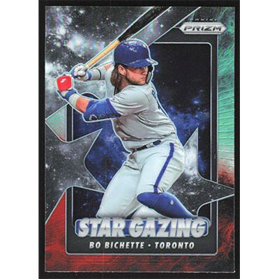 This is a 2020 Panini Prizm Star Gazing Cosmic Haze Bo Bichette baseball card. The card is #SG-6 and pictures show condition.