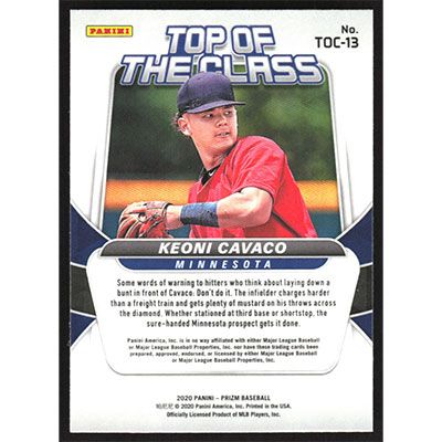 This is a 2020 Panini Prizm Top of The Class Keoni Cavaco baseball card. The card is #TOC-13 and pictures show condition.