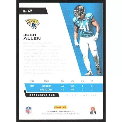 This is a 2020 Playoff Josh Allen football card. The card is #67 and pictures show condition.