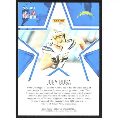 This is a 2020 Rookies & Stars Joey Bosa football card. The card is #48 and pictures show condition.