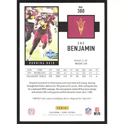 This is a 2020 Score Eno Benjamin football card. The card is #380 and pictures show condition.
