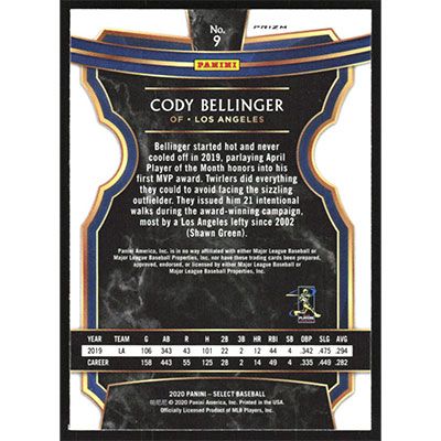 This is a 2020 Select Prizms Scope Cody Bellinger baseball card. The card is #9 and pictures show condition.