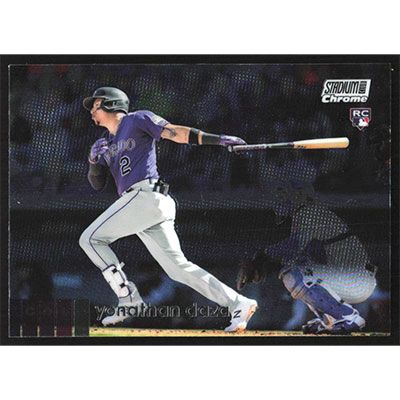 This is a 2020 Stadium Club Chrome Yonathan Daza baseball card. The card is #335 and pictures show condition. Team(s): Colorado Rockies Rookie Card (RC)