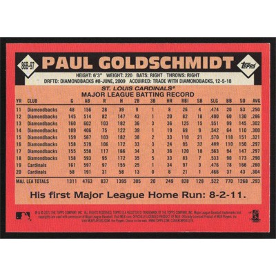 This is a 2020 Topps '86 Paul Goldschmidt baseball card. The card is #86B-97 and pictures show condition.