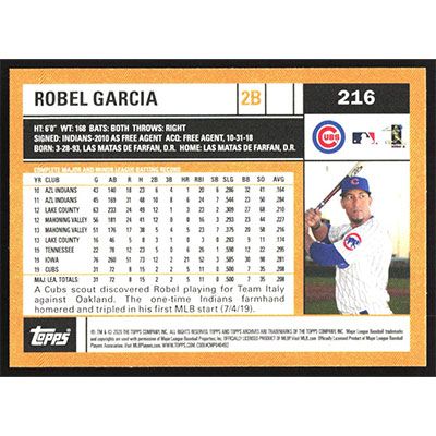 This is a 2020 Topps Archives Robel Garcia baseball card. The card is #216 and pictures show condition.