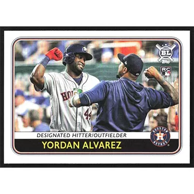 This is a 2020 Topps Big League Yordan Alvarez baseball card. The card is #123 and pictures show condition.