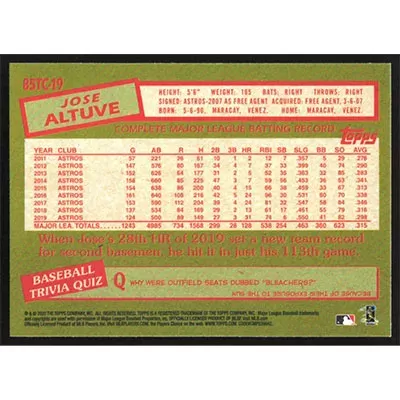 This is a 2020 Topps Chrome '85 Jose Altuve baseball card. The card is #85TC-19 and pictures show condition.