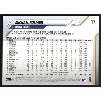 This is a 2020 Topps Chrome Ben Baller Michael Fulmer baseball card. The card is #18 and pictures show condition.