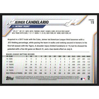 This is a 2020 Topps Chrome Ben Baller Jeimer Candelario baseball card. The card is #19 and pictures show condition.