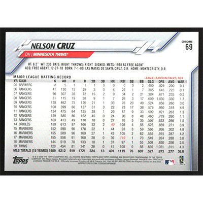 This is a 2020 Topps Chrome Ben Baller Nelson Cruz baseball card. The card is #69 and pictures show condition.