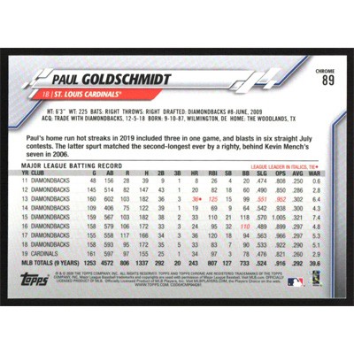 This is a 2020 Topps Chrome Ben Baller Paul Goldschmidt baseball card. The card is #89 and pictures show condition.
