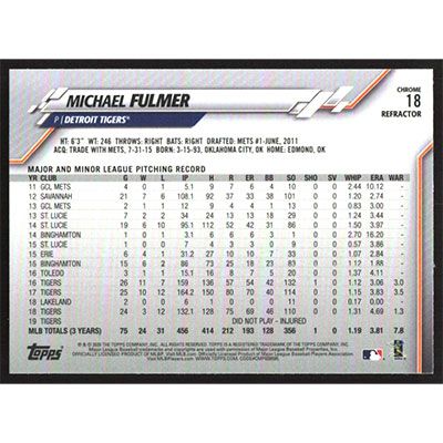 This is a 2020 Topps Chrome Pink Refractors Michael Fulmer baseball card. The card is #18 and pictures show condition.