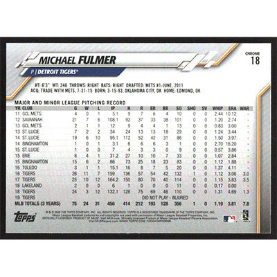 This is a 2020 Topps Chrome Prism Refractors Michael Fulmer baseball card. The card is #18 and pictures show condition.