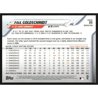 This is a 2020 Topps Chrome Sepia Refractors Paul Goldschmidt baseball card. The card is #89 and pictures show condition.