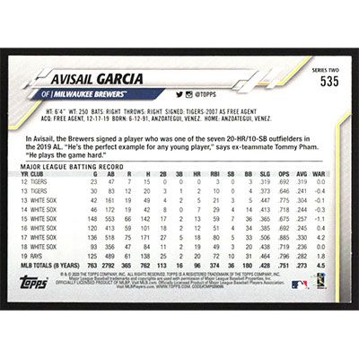 This is a 2020 Topps Rainbow Foil Avisail Garcia baseball card. The card is #535 and pictures show condition.