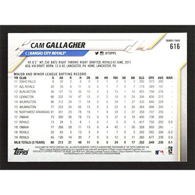 This is a 2020 Topps Rainbow Foil Cam Gallagher baseball card. The card is #616 and pictures show condition.