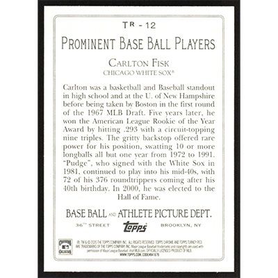 This is a 2020 Topps Turkey Red Carlton Fisk baseball card. The card is #TR-12 and pictures show condition.