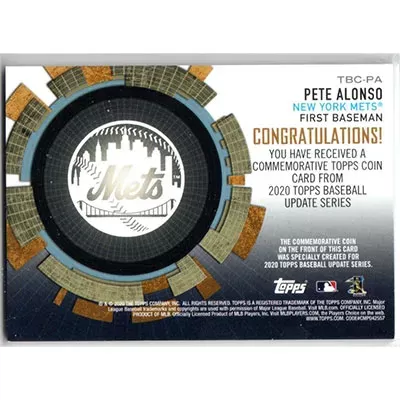 This is a 2020 Topps Update Coin Cards Pete Alonso baseball card. The card is #TBC-PA and pictures show condition. Team(s): New York Mets