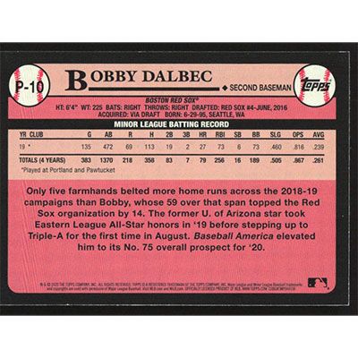 This is a 2020 Topps Update Prospects Bobby Dalbec baseball card. The card is #P-10 and pictures show condition.