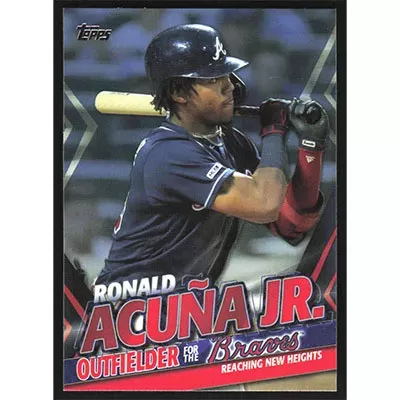 This is a 2020 Topps Update Ronald Acuña Jr. Highlights baseball card. The card is #TRA-7 and pictures show condition.