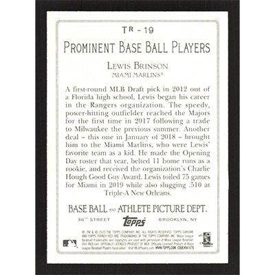 This is a 2020 Topps Update Turkey Red Lewis Brinson baseball card. The card is #TR-19 and pictures show condition.