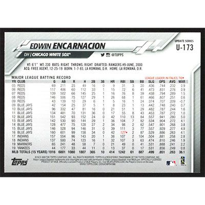 This is a 2020 Topps Update Edwin Encarnacion baseball card. The card is #U-173 and pictures show condition.