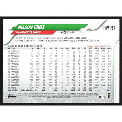 This is a 2020 Topps Wal-Mart Holiday Nelson Cruz baseball card. The card is #HW157 and pictures show condition.