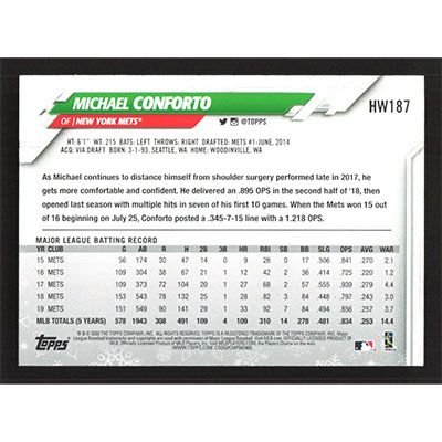 This is a 2020 Topps Wal-Mart Holiday Michael Conforto baseball card. The card is #HW187 and pictures show condition.