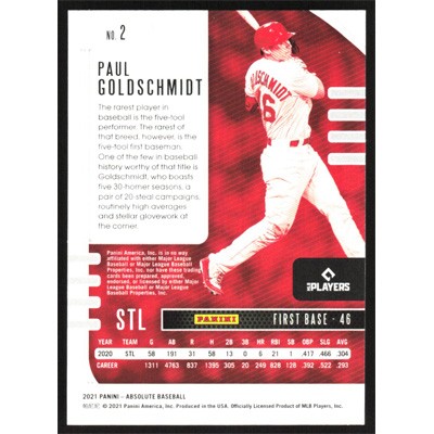 This is a 2021 Absolute Paul Goldschmidt baseball card. The card is #2 and pictures show condition.