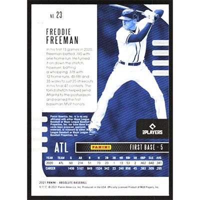 This is a 2021 Absolute Freddie Freeman baseball card. The card is #23 and pictures show condition.