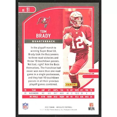 This is a 2021 Absolute Tom Brady football card. The card is #91 and pictures show condition.