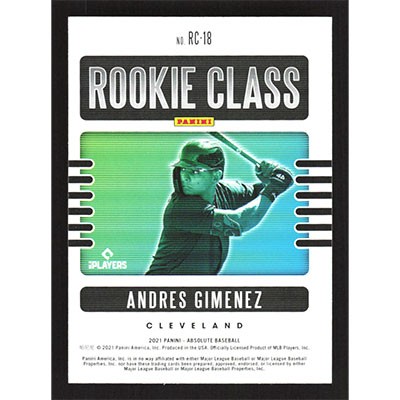 This is a 2021 Absolute Rookie Class Andres Gimenez baseball card. The card is #RC-18 and pictures show condition.