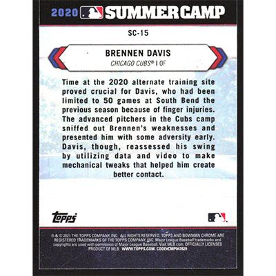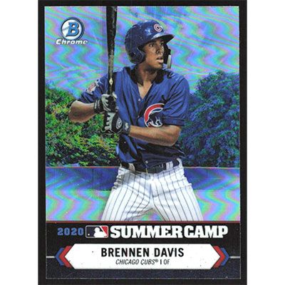 This is a 2021 Bowman Chrome '20 Summer Camp Refractors Brennen Davis baseball card. The card is #SC-15 and pictures show condition. Team(s): Chicago Cubs