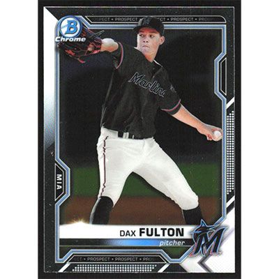 This is a 2021 Bowman Chrome Prospects Dax Fulton baseball card. The card is #BCP-32 and pictures show condition.