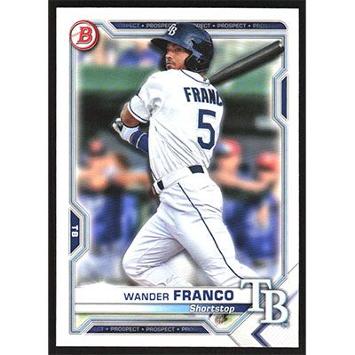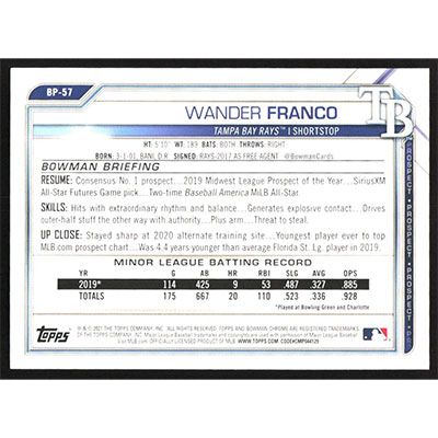 This is a 2021 Bowman Prospects Wander Franco baseball card. The card is #BP-57 and pictures show condition.
