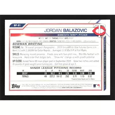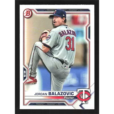 This is a 2021 Bowman Prospects Jordan Balazovic baseball card. The card is #BP-61 and pictures show condition.
