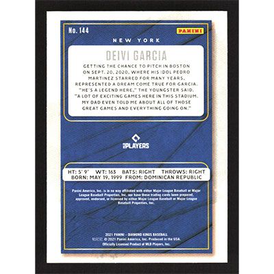 This is a 2021 Diamond Kings Deivi Garcia short print baseball card. The card is #144 and pictures show condition. Team(s): New York Yankees Rookie Card (RC)