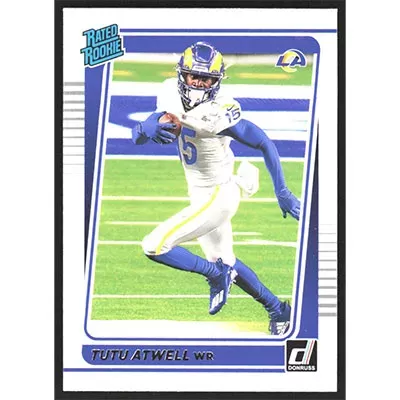 This is a 2021 Donruss Tutu Atwell Rated Rookie football card. The card is #272 and pictures show condition.